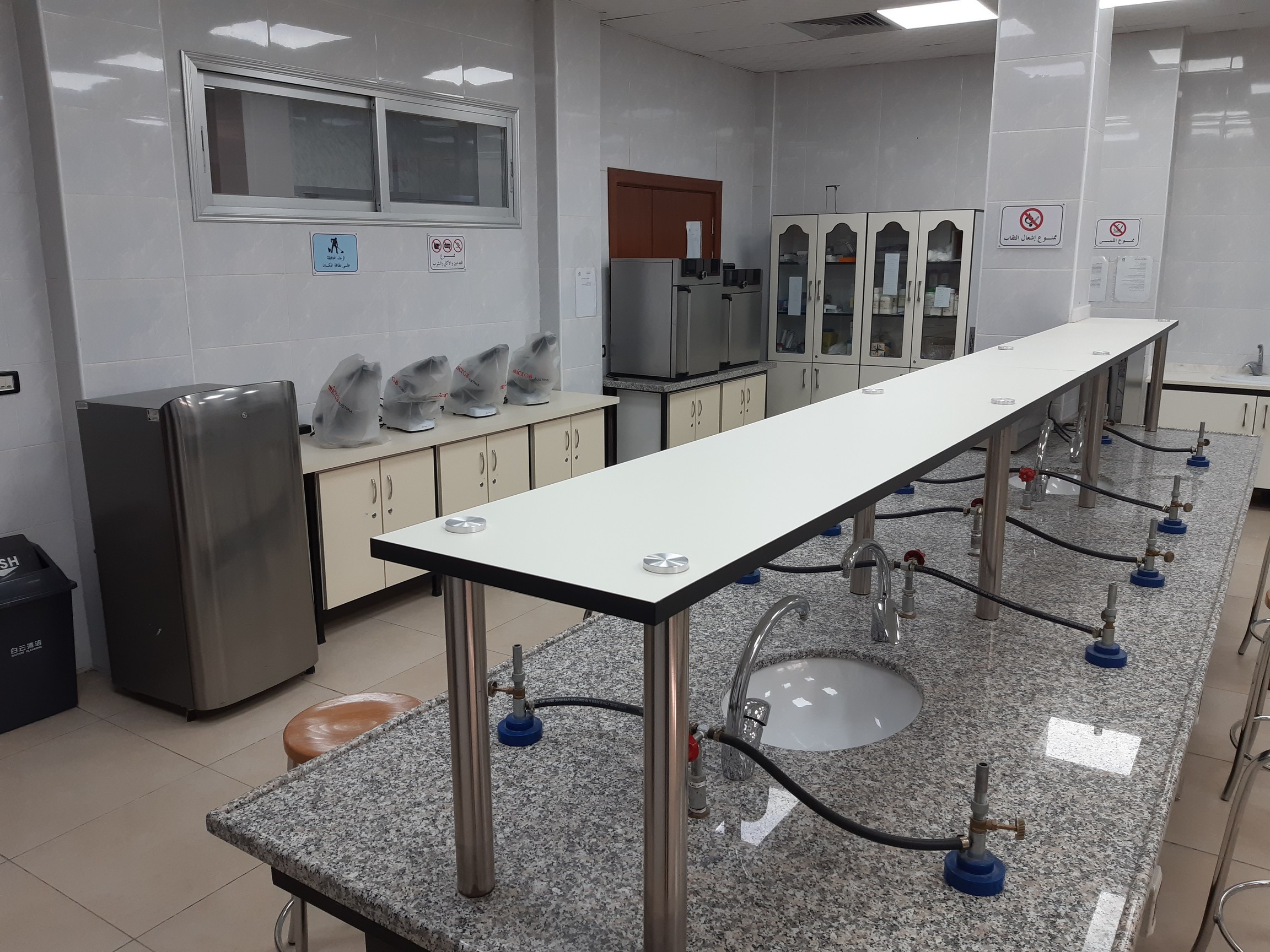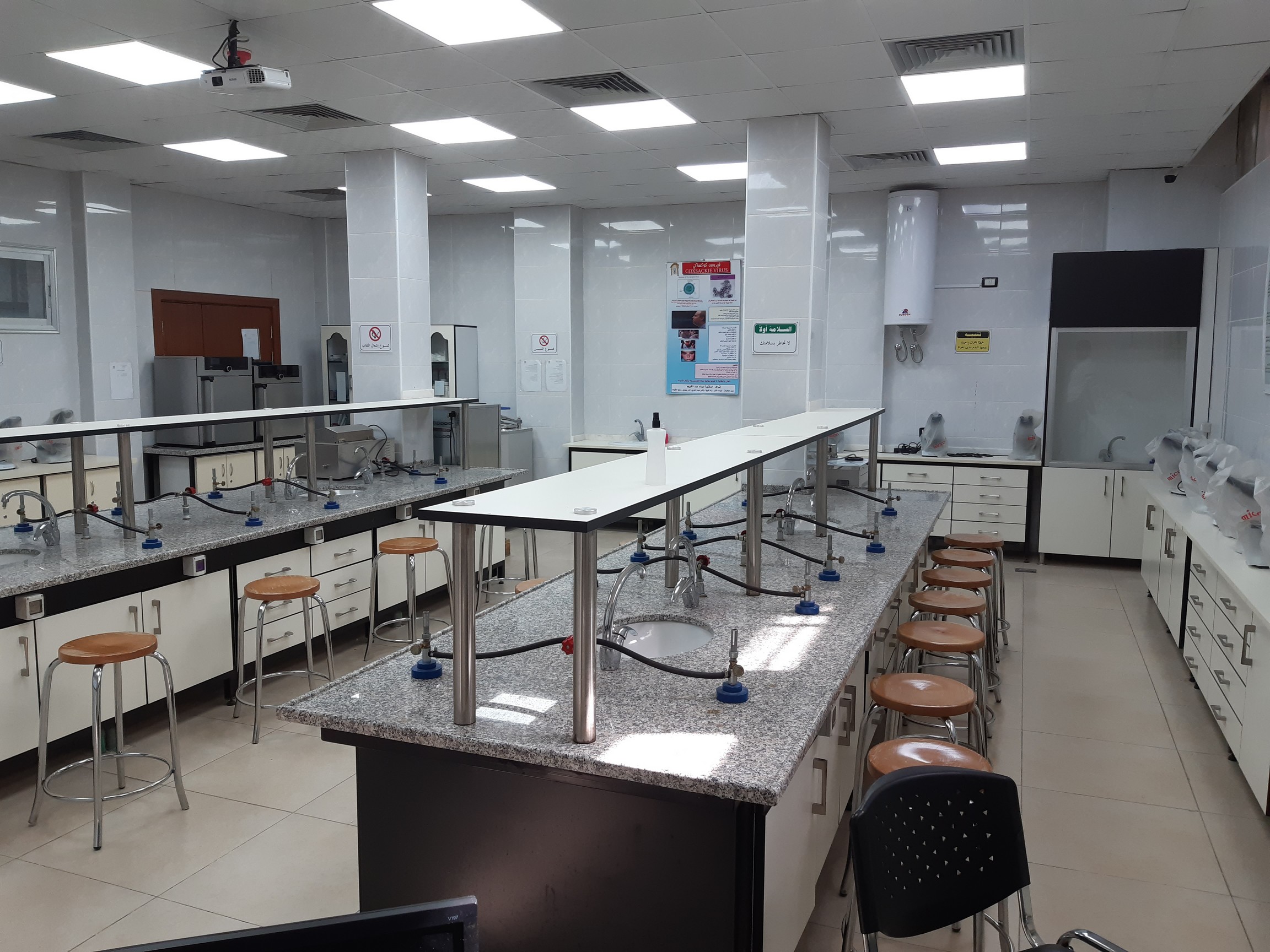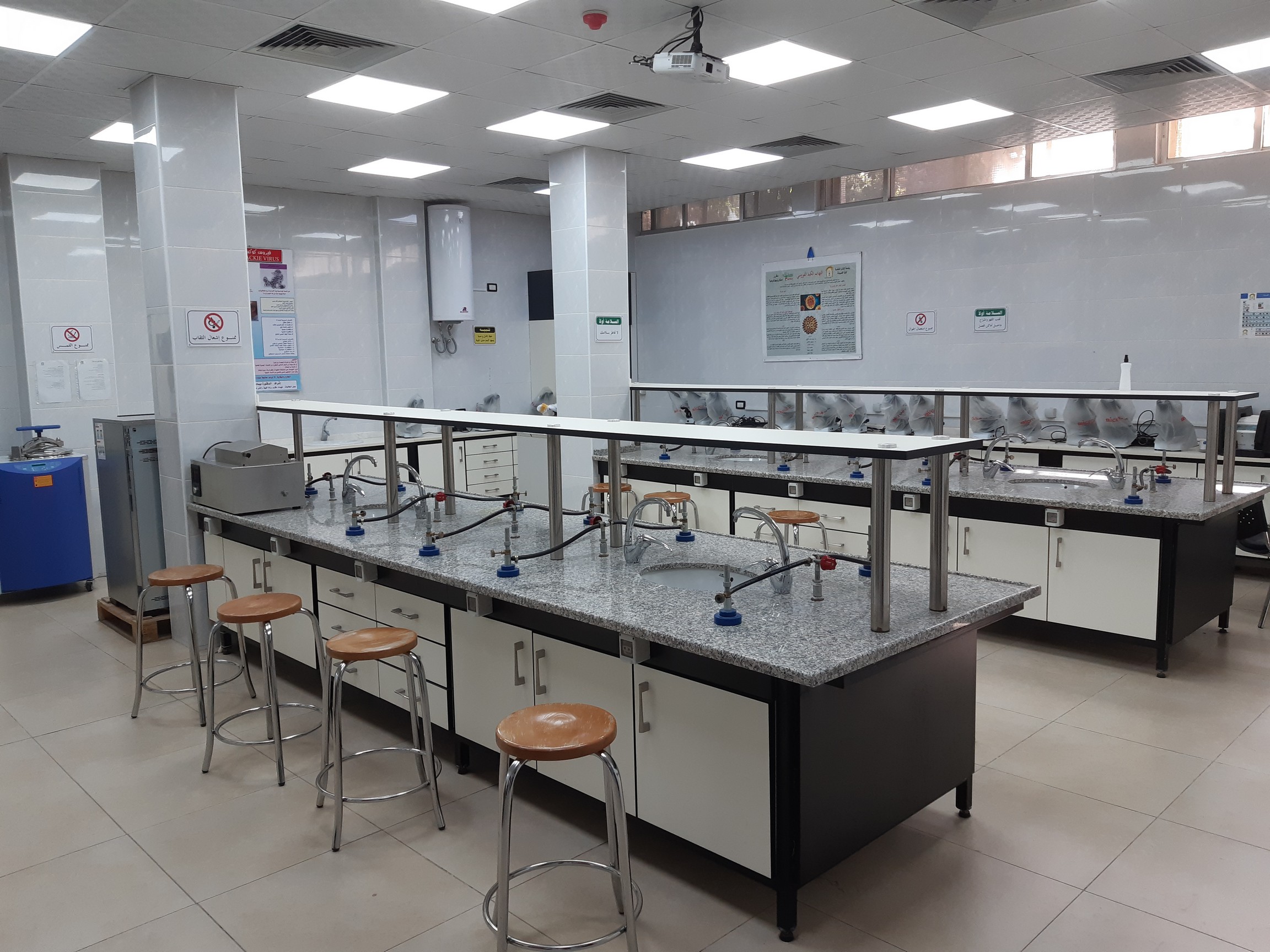 In this lab, sessions for the subjects of microbiology 1, microbiology 2, and bacteriological pharmacology are held , in addition to the course of hematology and immunology, in terms of the use of microscopes for bacterial and parasitic preparations and certain blood experiments in addition to the detection of blood groups