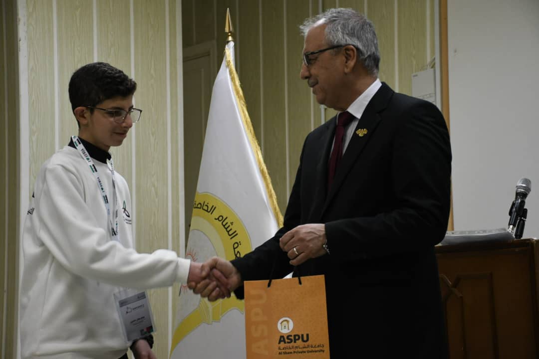 وختَم كلمته بتقديم أطيب التمنيات للمشاركين بالتوفيق والنجاح في مسيرتهم العلمية، مؤكّدًا أن أبواب جامعة الشام الخاصة ستظل دائمًا مفتوحة أمام المبدعين والطموحين.