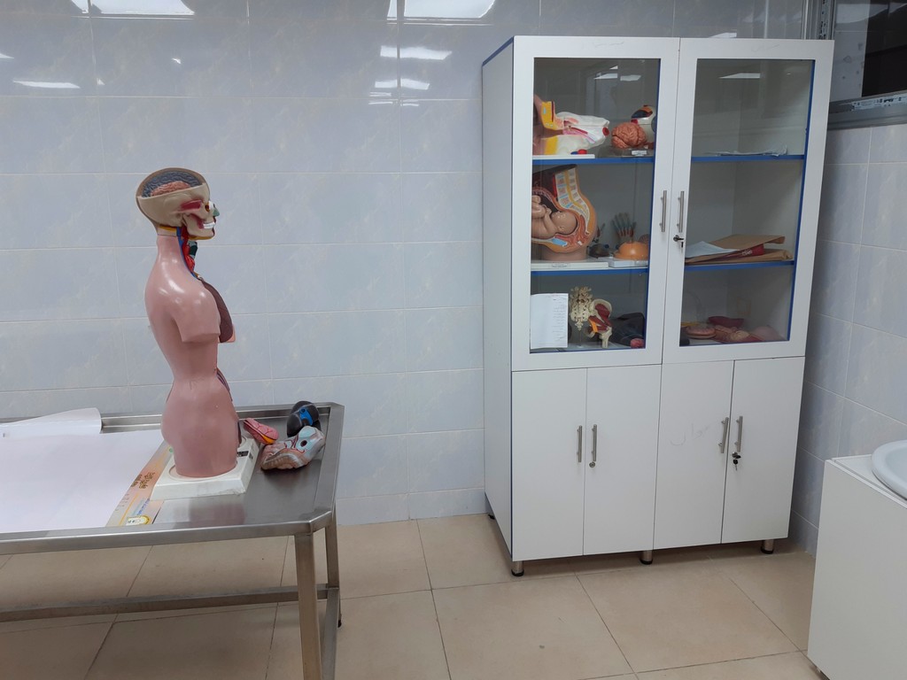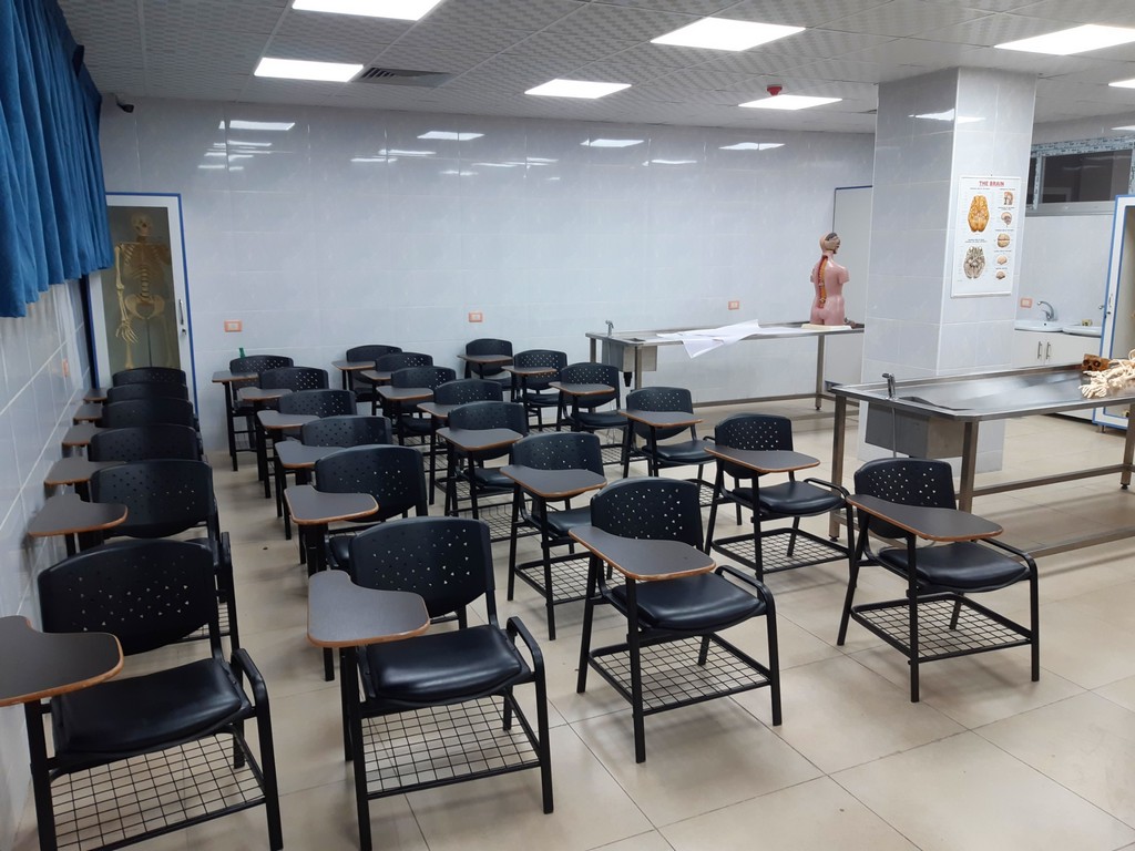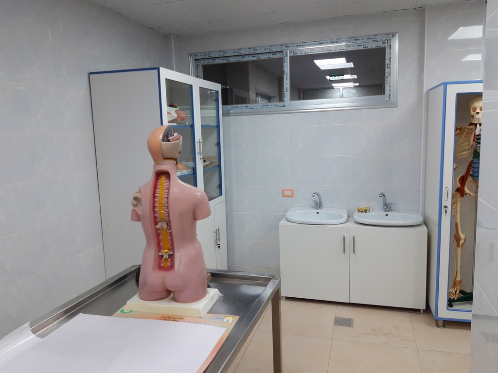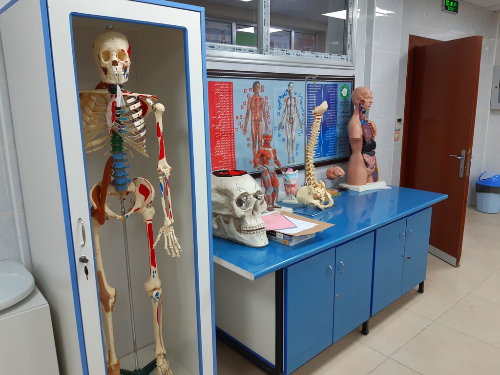 يتم التدريس والبحث والتشريح لجميع أجهزة الجسم (يكل عظمي – قفص صدري – جهاز عصبي مركزي ونخاع شوكي – جهاز الدوران والقلب والرئتين – جهاز الهضم بأقسامه وملحقاته – الحوض) ضمن جلسات العملي موزعة على أربعة مقررات: