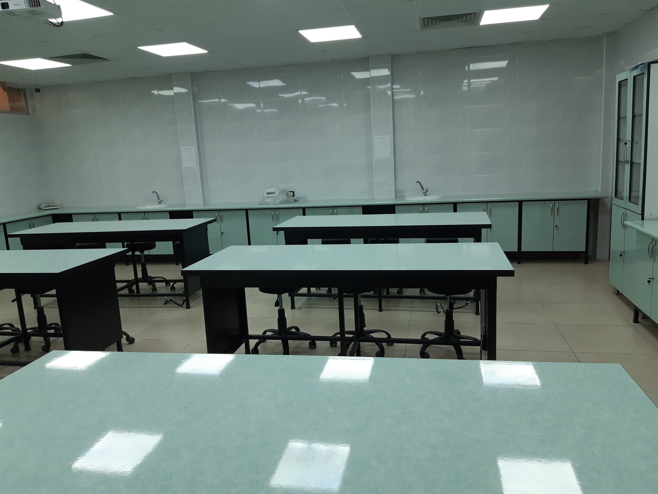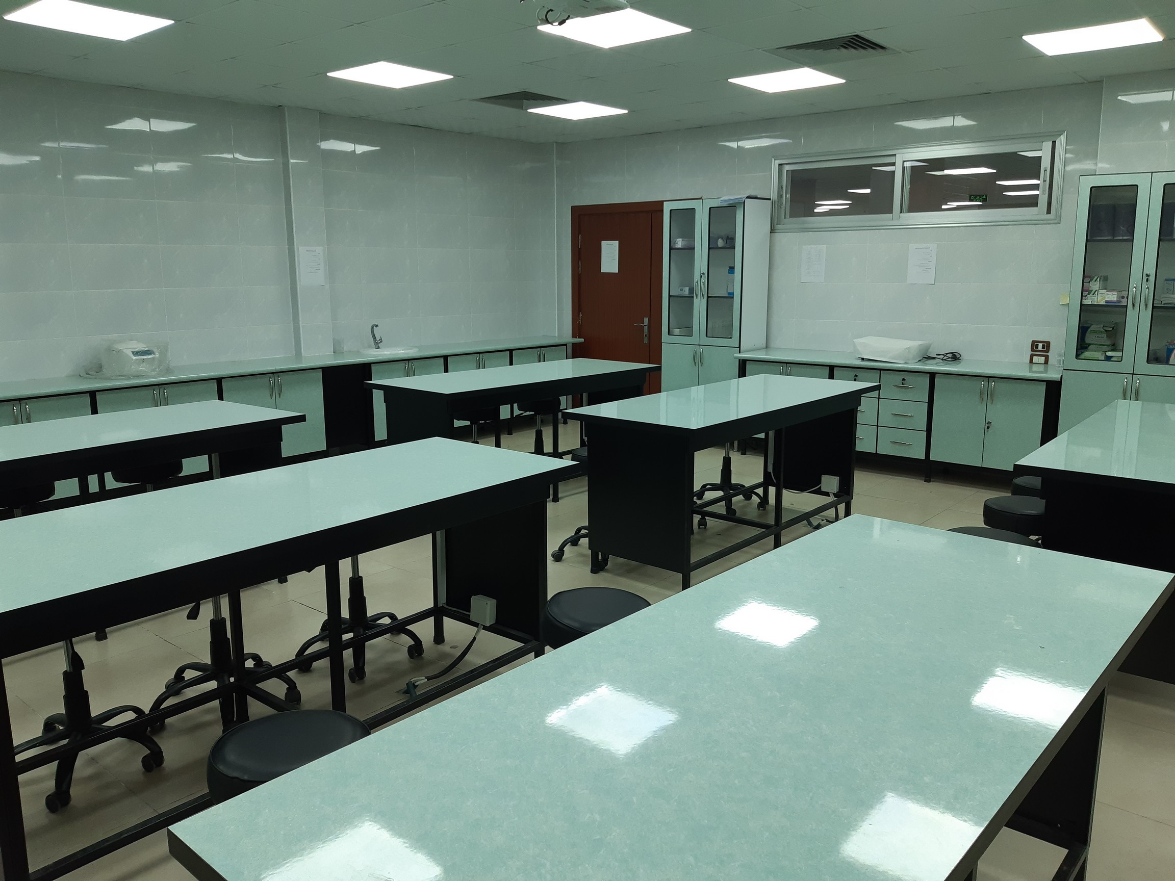 يتم تعليم الطلاب كيفية التعامل مع عينات الدم و البول في المخبر و سحب الدم و فصل البلازما او المصل ثم معرفة مبدا العمل على جهاز التحليل الكيميائي مقياس الطيف الضوئي و اجراء قياس كيمياء الدم عند الانسان مثل اسكر و البولة الدموية و حمض البول باجراء قياس دقيق بعد قراءة العيارات المناسبة و يتم تدريس العملي و توزيع التجارب على فصلين