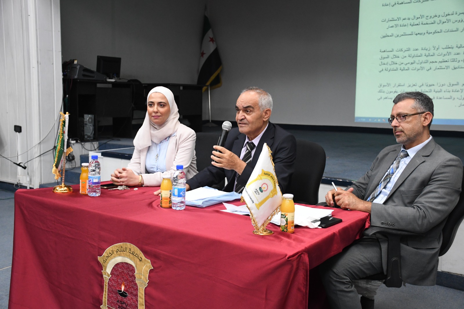 حيث تم تبادل الآراء والأفكار حول التطلعات المستقبلية لدور سوق دمشق المالية في المرحلة القادمة وماهي نقاط الضعف في السوق الحالية بعد إعادة التداول في سوق دمشق للأوراق المالية مؤخراً ليكون بوابة للاستثمار الأجنبي وبمشاركة عدد من الضيوف من أهل الاختصاص وحشد طلابي من داخل وخارج الجامعة، وقد خلصت الورشة إلى مجموعة من النتائج والمقترحات الهامة.