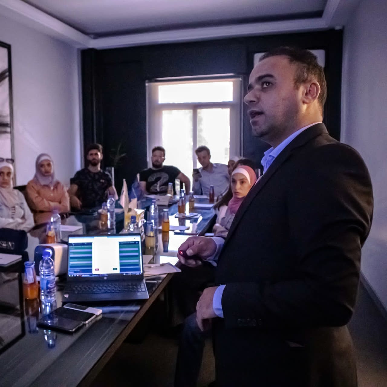 قام طلاب كلية العلوم الإدارية قسم المصارف و المؤسسات المالية بزيارة تدريبية إلى شركة الوساطة ألفا كابيتال برفقة الدكتورة رنيم الدكي والدكتورة شيرين ديب.