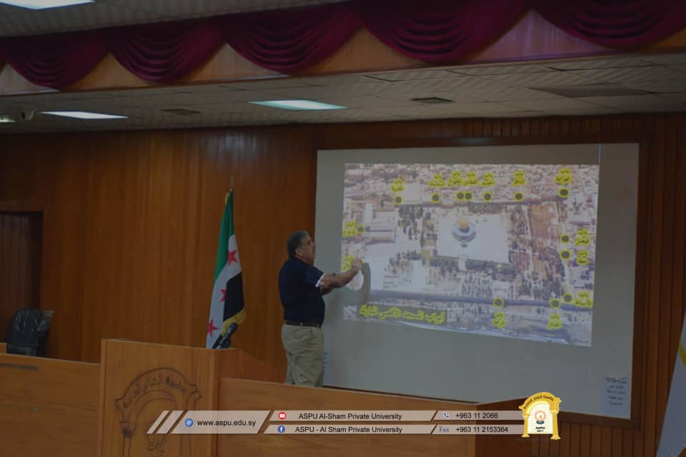 تحت رعاية الأستاذ الدكتور عبد المنعم عبد الحافظ رئيس جامعة الشام الخاصة أقامت كليات الجامعة في اللاذقية محاضرة ثقافية تحت عنوان: "الأقصى بين العمارة والعمران"، ألقاها الدكتور هاني هاشم ودح بحضور أعضاء لجنة تسيير الأعمال _ فرع اللاذقية، والسادة العمداء وعدد من الضيوف والكادر الإداري في الجامعة .