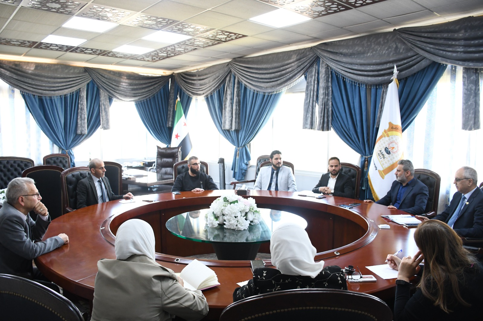 عقد في جامعة الشام الخاصة اجتماعٌ موسعٌ بحضور وفدٍ من الأمانة العامة للشؤون السياسية، في إطار تعزيز قنوات التواصل المؤسسي ودعم مشاركة الشباب الجامعي في الحياة الوطنية والمجتمعية.