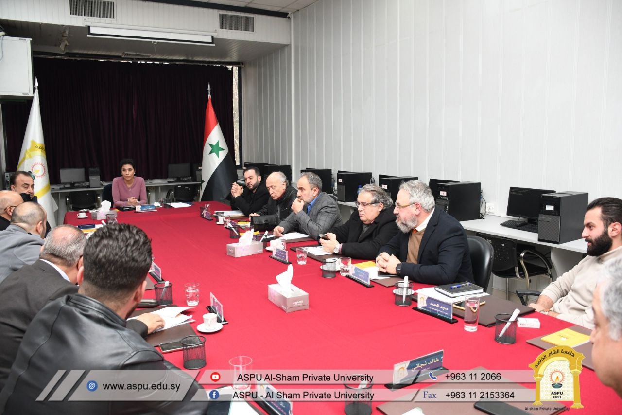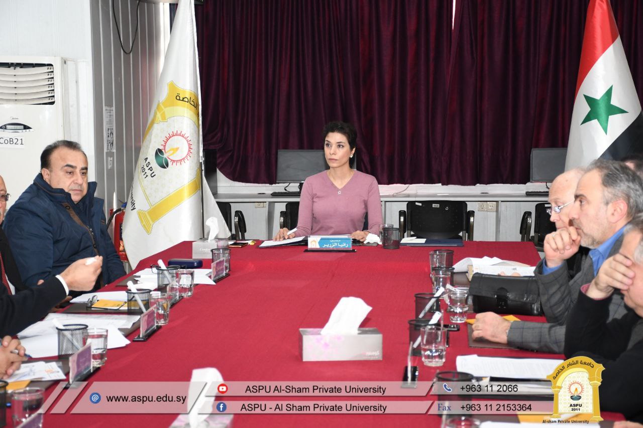 برئاسة الأستاذة الدكتورة رانيا الزرير المكلفة بأعمال رئيس جامعة الشام الخاصة عقد مجلس الجامعة جلسته الثامنة والسبعون وذلك في مقر الجامعة بالبرامكة.
