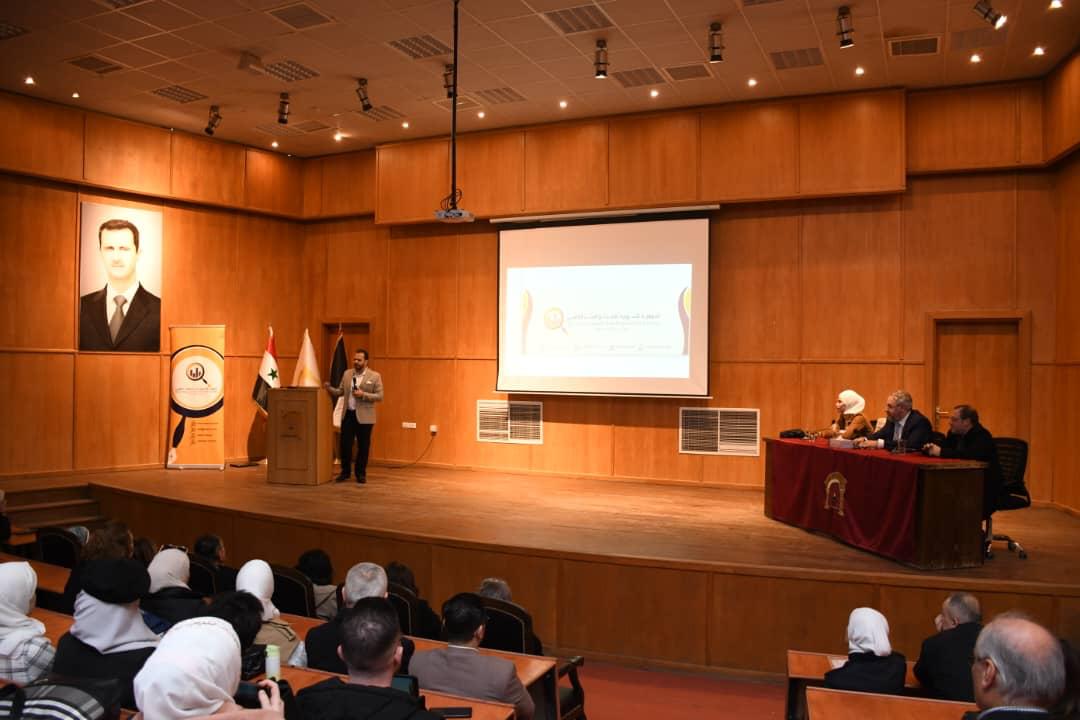 برعاية الأستاذ الدكتور شريف الأشقر رئيس جامعة الشام الخاصة وبحضور عدد من السادة عمداء الكليات ونوابهم والسادة أساتذة الكلية وطلابها ومجموعة من المهتمين والباحثين، أقامت كلية الصيدلة وبالتعاون مع الجمعية السورية للبحث والنشر العلمي والاتحاد الوطني لطلبة سورية ورشة عمل بعنوان: (أساسيات البحث العلمي والنشر)، بدوره قدم الدكتور حيان السباعي لمحة تعريفية عن الجمعية السورية للبحث والنشر العلمي ومقدمة عن البحث العلمي، وقدم الدكتور نورس الحلبي شرحاً مفصلاً عن منهجيات البحث العلمي الطبي، وختمت الدكتورة لجين سحلول فعاليات الورشة بالشرح عن المواقع المستخدمة في البحث العلمي الطبي.