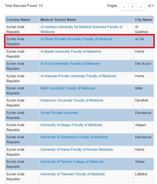 جاء اعتراف الهيئة التعليمية لخريجي الطب البشري الأجانب في الولايات المتحدة الأمريكية (ECFMG) وكندا، بالطلاب الخرجين من كلية الطب البشري في جامعة الشام الخاصة.