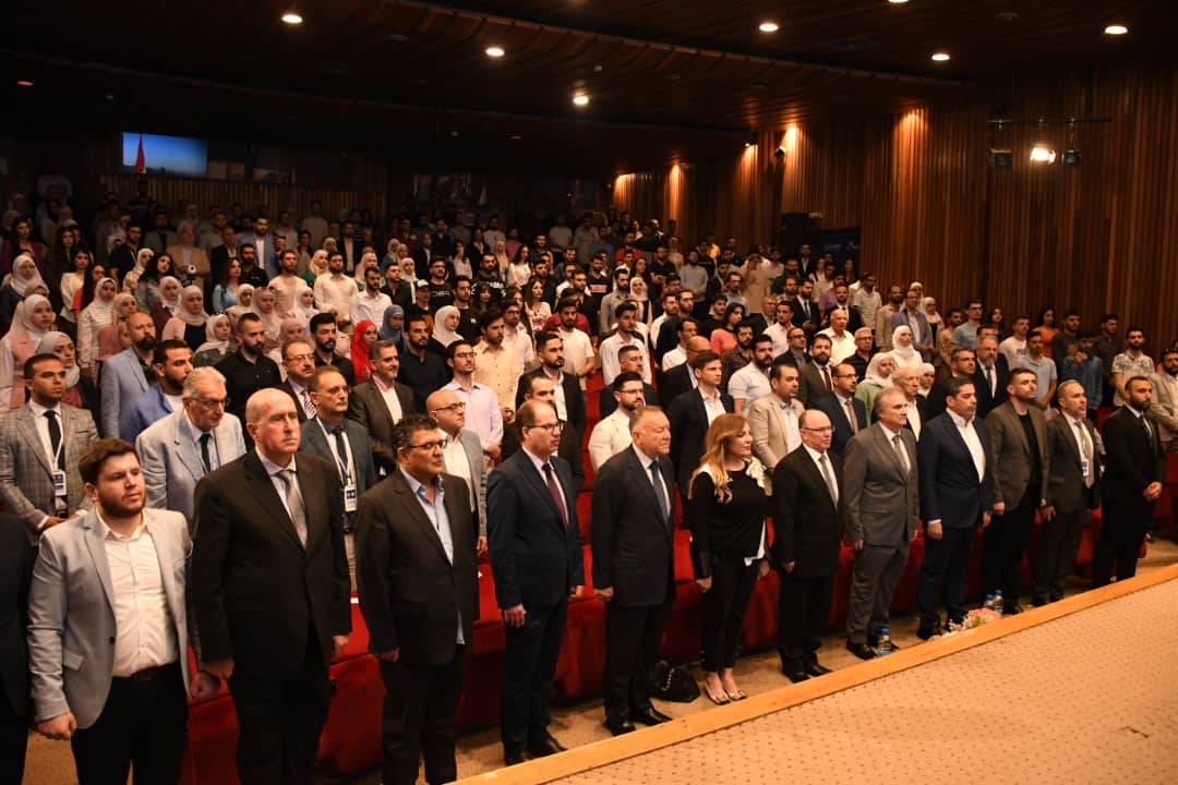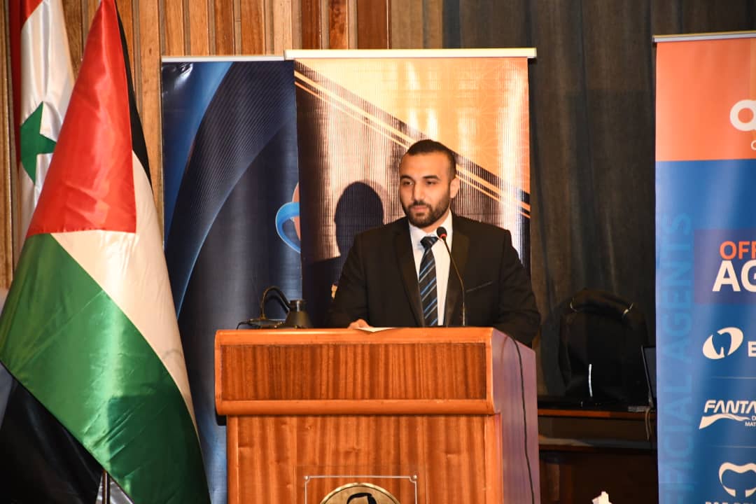 بدروه الزميل محمد جلال محمد شيخه تحدث عن دور الاتحاد الوطني لطلبة سورية الداعم الأساسي للفعاليات العلمية والأنشطة الطلابية بمختلف أنواعها من خلال تأمين جميع مستلزماتها والعمل المستمر على توفير بيئة للمؤتمرات العلمية التي تعد منصة علمية لتبادل الخبرات والمعلومات بين المشاركين على المستوى المحلي والدولي.