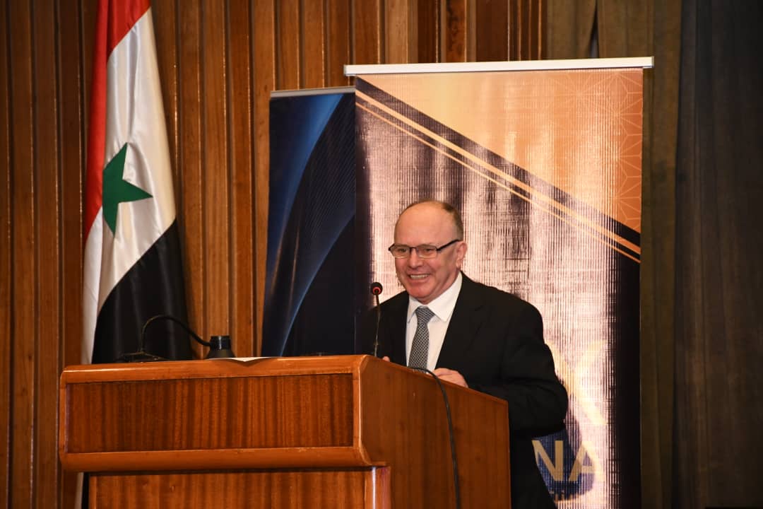 وفي الكلمة التي ألقاها الأستاذ الدكتور بسام إبراهيم وزير التعليم العالي والبحث العلمي راعي هذا المؤتمر نوه ان احدى المؤسسات التعليمية التي نعتز ونفتخر بها هي جامعة الشام الخاصة التي تندرج ضمن منظومة وزارة التعليم العالي والبحث العلمي، ان هذا المؤتمر عام وراء عام يتطور بشكل كبير وحيث بدأت هذه الجامعة تطور عام بعد عام وما هذا إلا نتيجة منطقية لعملً مستمر من البناء والهيكلة وتطوير وتحديث للمناهج والخطط الدراسية والبرامج بشكل مستمر وتزويد المخابر بأحدث التجهيزات و وسأل التعليم التقنية الحديثة بهدف تعزيز دور الجامعة في بناء كفاءات وكوادر بشرية متعلمة، ولقد اصبح عدد طلاب هذه الجامعة بحدود 9000 طالباً وطالبة وبلغ عدد خريجيها ما يزيد عن 2000 طالب وهذا كله جاء نتيجة جهود كبيرة واهتمام مبذول من قبل مجلس أمناء هذه الجامعة ومجلس الجامعة والاتحاد الوطني لطلبة سورية وعمادة الكليات وباشراف ومتابعة من القيادة المركزية لحزب البعث العربي الاشتراكي.