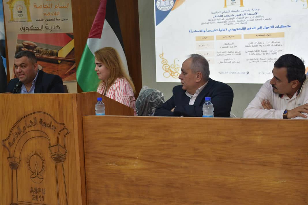 برعاية وحضور رئيس جامعة الشام الخاصة الأستاذ الدكتور شريف الأشقر وبالتعاون مع الاتحاد الوطني لطلبة سورية أقامت كلية الحقوق في كليات اللاذقية صباح اليوم ورشة عمل بعنوان (متطلبات التحول إلى الدفع الالكتروني "مالياً، تشريعياً، واقتصادياً").