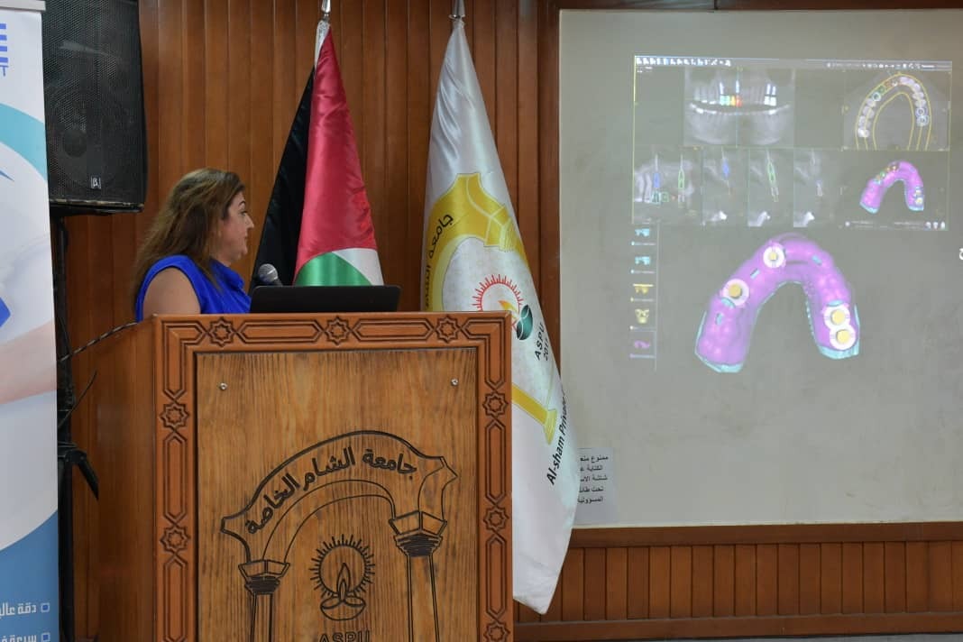 The scientific program included lectures by: Dean of the Faculty of Dentistry in Latakia, Dr. Hazem Hassan, entitled: (Digital work flow in orthodontics), Dr. Ruwayda Saima lecture : (digital implant surgery), and a lecture by Dr. Marwan Shamout entitled: (digital work flow in prosthodontics), then Dr. Moataz Abdel Majeed gave a lecture entitled: (3D imaging concept and applications in dentistry).